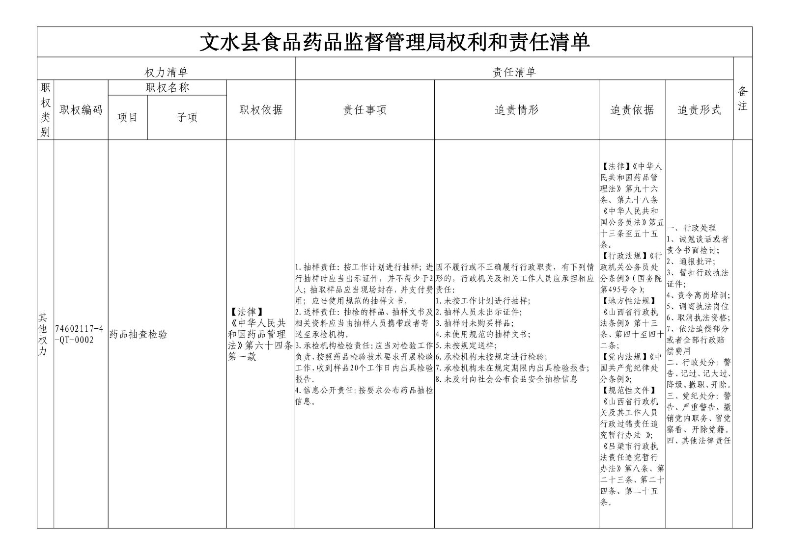 其他权力 74602117-4-QT-0002药品抽查检验
